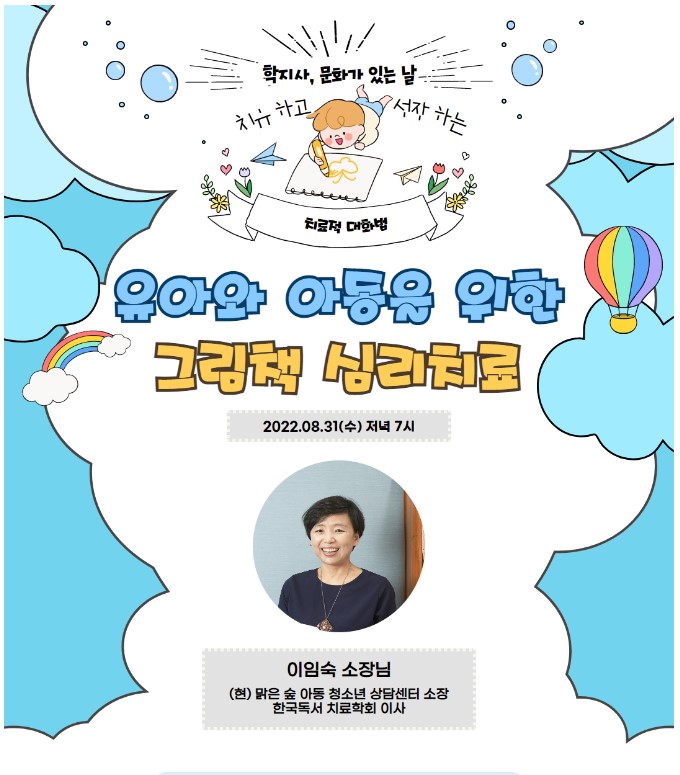 - 강사소개: 이임숙(맑은숲아동청소년상담센터 소장/ 한국독서치료학회 이사)