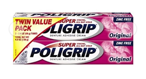 시중에 판매되는 제품으로는 Poligrip, Fixodent, 폴리덴트 등이 있으나 zinc free라고 명시되어 있는 제품으로는 위 사진에서 볼 수 있다.