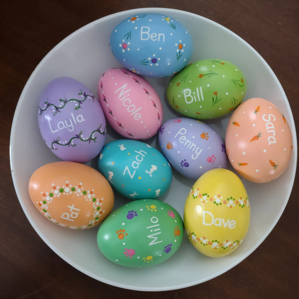 Hand Painted Ceramic Easter Egg: 세라믹으로 만들어진 계란에 손그림을 그린 것도 인기가 많아요. 아이들 이름을 직접 써 준다면 더욱 의미가 있겠죠!
