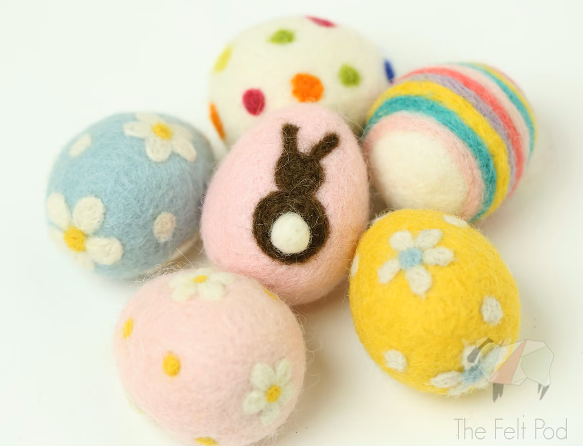 Wool Felt Eggs: 펠트 천으로 계란 모양을 만들어 부활절 관련 색과 무늬로 장식합니다. Esty에서 가장 인기있게 팔리는 상품중의 하나.
