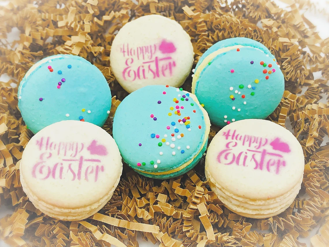 Easter Baking and dessert 베이커리 사장님들께 팁: 케잌이나 마카롱도 easter를 이용해서 꾸며 볼 수도 있네요. Esty에서 이 마카롱은 star seller로 인기가 높네요. 같은 마카롱이라도 색깔과 문구만 바꿔서 시절을 즐길 수 있네요.