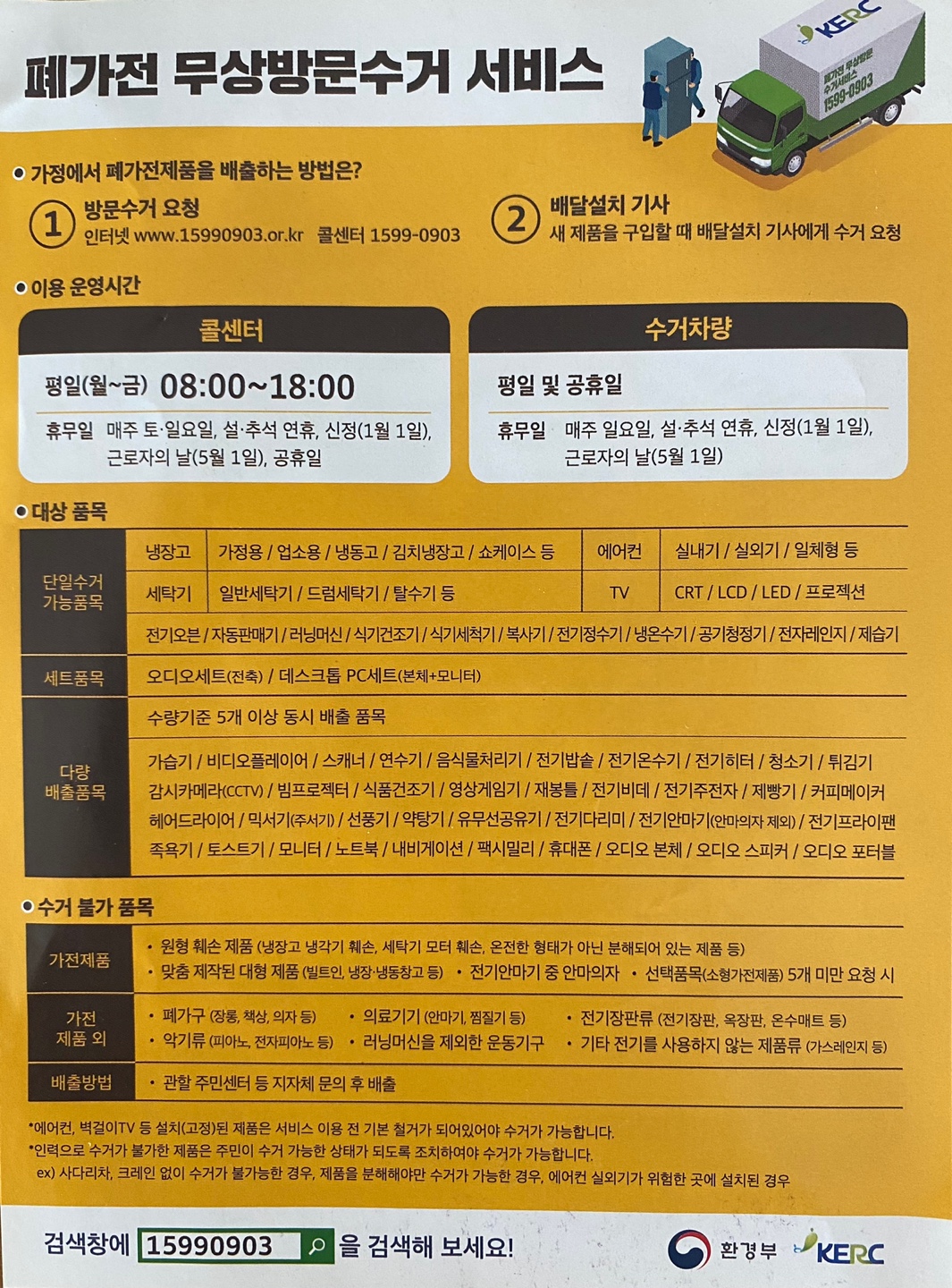 수거 기사가 직접 가정을 방문하여 무거운 폐가전제품을 수거해가는 서비스입니다.