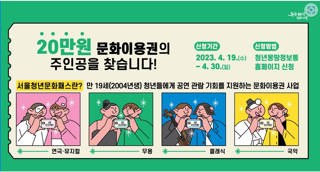 - 서울청년문화패스 전용 홈페이지(추후안내)를 통한 공연 예매 및 관람