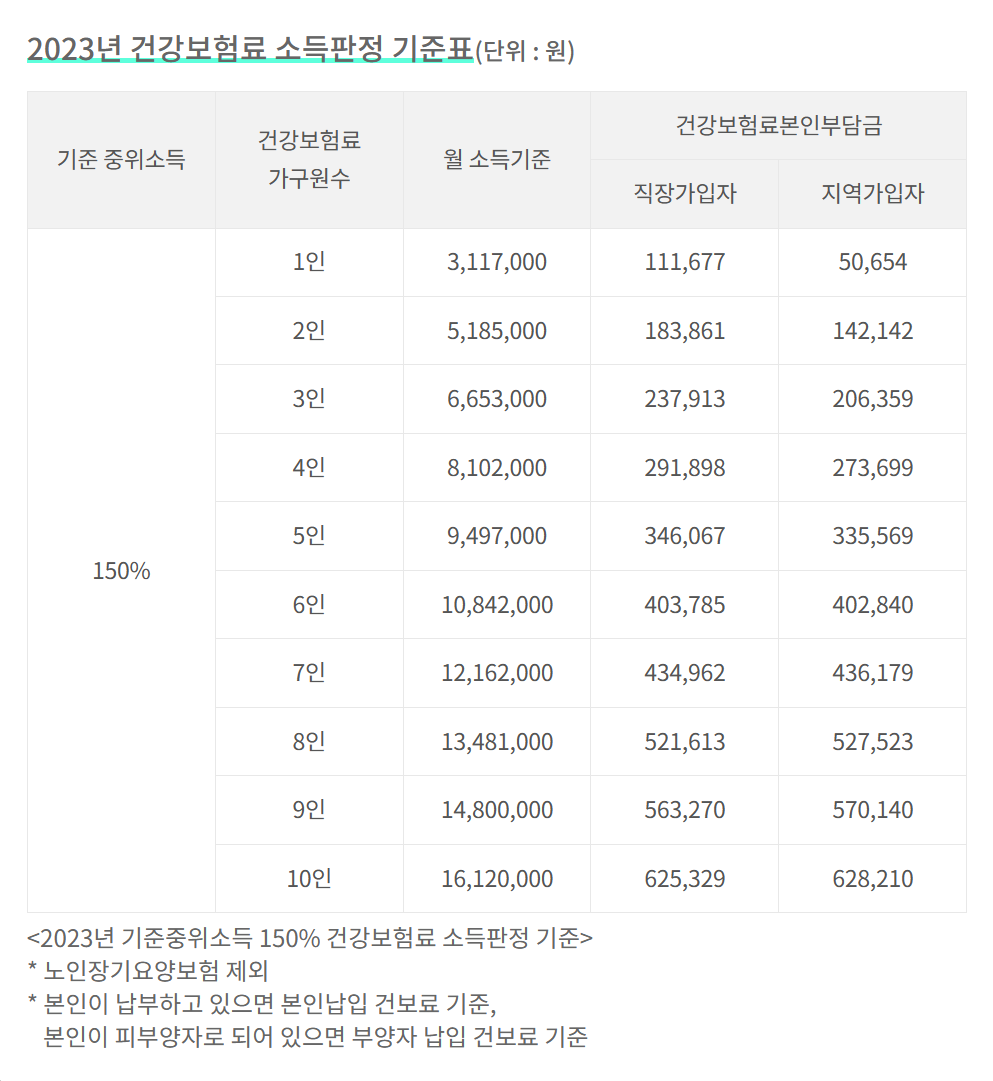 ※ 본인이 납부하고 있으면 본인납입 건보료 기준, 본인이 피부양자로 되어 있으면 부양자 납입 건보료 기준
