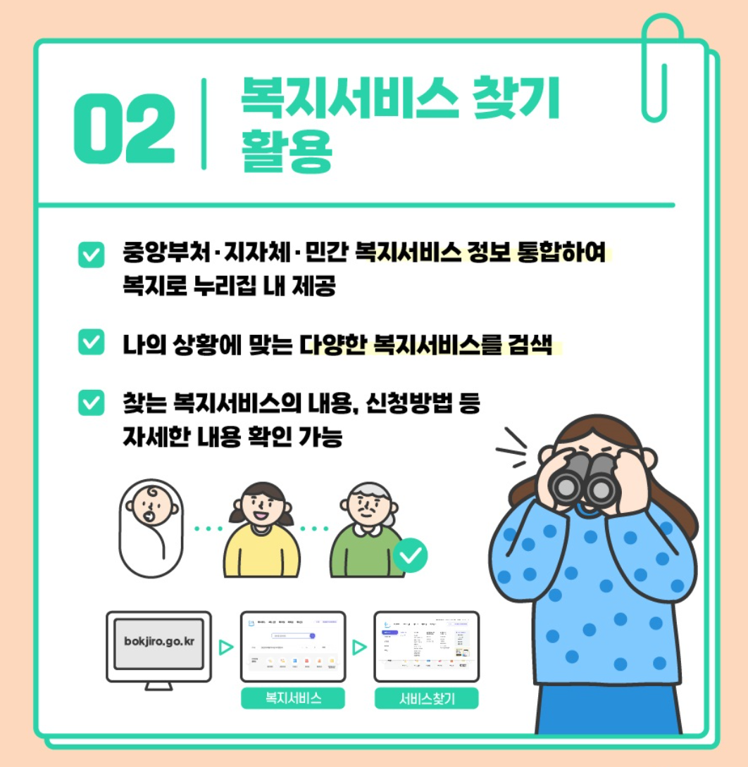 - 중앙부처, 지자체, 민간 복지서비스 정보 통합하여 복지로 누리집 내 제공