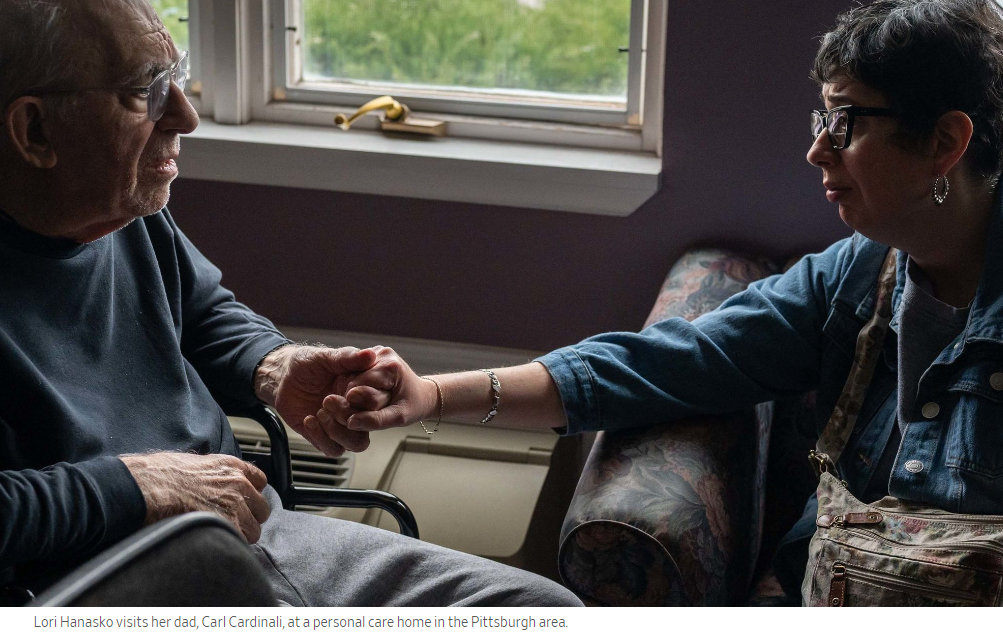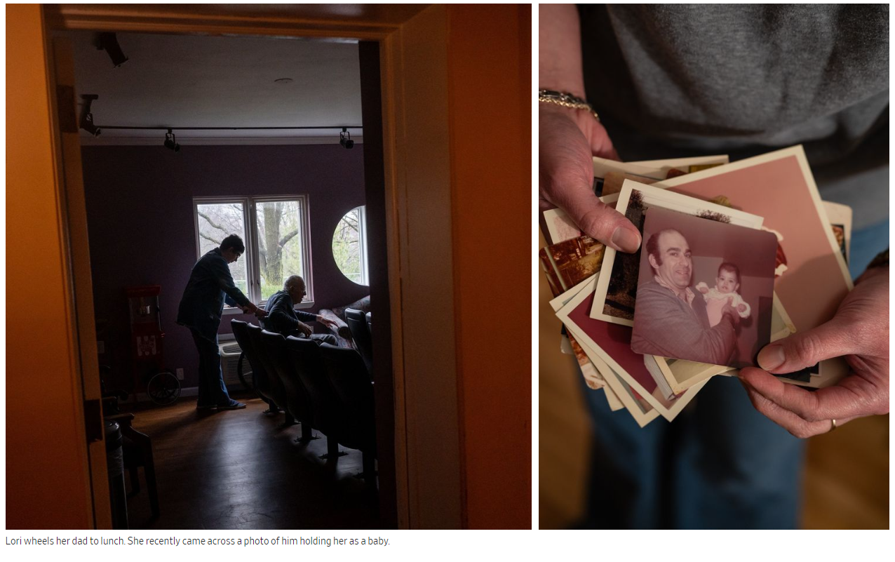 12월 26일, 어머니로부터 아버지가 밖에 쓰러졌다는 전화가 걸려왔습니다. 3주 동안 전문 간호를 받은 후, 그녀는 물리 치료와 기억력 치료를 위해 아버지를 개인 유료 요양원으로 옮겼습니다. 월 3,000달러의 청구서는 부모님의 월 수입을 초과합니다. 부모님은 재향군인 혜택이나 저소득 노인의 의료보험을 받을 자격이 없습니다. 로리는 저축한 돈으로 3월분 비용을 지불했습니다. 그녀는 매일 아버지를 방문하고 주말에는 면도를 해드리고 있습니다.