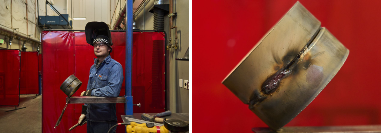 지난 가을에 9개월간의 용접 프로그램을 졸업한 태너 버지스(20세)는 "무언가를 찾고 싶지만 대학 진학에 대한 두려움이 없는 아이들에게 정말 현명한 길입니다."라고 말합니다.