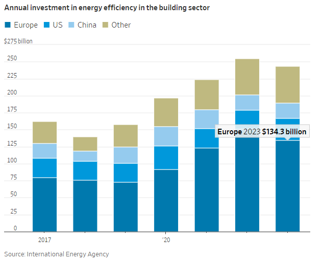 이를 달성하려면 건물 에너지 효율에 대한 투자가 약 두 배로 증가해야 합니다. 2023년 전 세계 부동산 절전 조치에 대한 지출은 2,440억 달러에 달했습니다. 이는 전년 대비 4% 감소한 수치입니다. 높은 이자율과 유가 및 가스 가격 하락으로 인해 투자에 대한 욕구가 다소 줄어들었습니다.