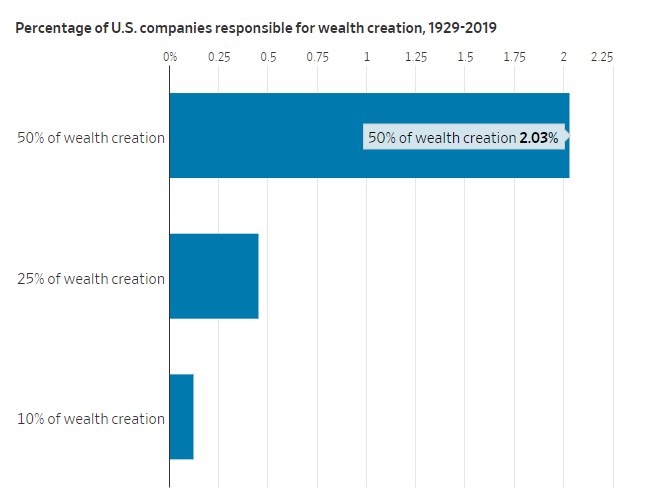 이번 추천 종목에서 가장 주목할 점은 다른 종목도 몇 개 있었지만, 보험사 Root라는 단일 종목이 모든 순이익을 책임졌다는 점입니다. 이는 현실과 일치합니다. 헨드릭 베셈빈더의 미국 주식 수익률에 대한 장기 연구에 따르면 전체 초과 수익의 절반이 단 83개 기업에서 발생한 것으로 나타났습니다. 대부분의 주식은 무위험 투자보다 수익률이 낮기 때문에 한 종목에 몰빵하지 않는 분산형 포트폴리오가 더 신중한 투자 전략입니다.